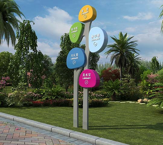 學(xué)校導(dǎo)視系統(tǒng)標(biāo)識(shí)牌設(shè)計(jì)需要充分考慮到學(xué)校學(xué)生的視覺(jué)習(xí)慣和認(rèn)知能力,確保學(xué)校導(dǎo)師系統(tǒng)符合學(xué)校氛圍和規(guī)范化。其次學(xué)生認(rèn)知能力和成人有較大差距,我們要充分視重視這種差異,盡量采用可視化易識(shí)別的版面信息,這符合學(xué)生的認(rèn)知能力,也是學(xué)校導(dǎo)視標(biāo)識(shí)牌人性化的一種表現(xiàn)。