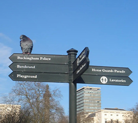 城市里大大小小的公園隨處可見(jiàn),是市民休閑娛樂(lè)的好去處。公園標(biāo)識(shí)系統(tǒng)在實(shí)現(xiàn)了系統(tǒng)化、規(guī)范化以后,最重要的還是人性化設(shè)計(jì)。在設(shè)計(jì)公園標(biāo)識(shí)時(shí)要考慮到老年人的視力問(wèn)題,會(huì)把公園標(biāo)識(shí)牌字號(hào)盡量放大一點(diǎn);公園里經(jīng)常會(huì)有兒童出入,標(biāo)識(shí)標(biāo)牌的邊角設(shè)計(jì)圓潤(rùn)一點(diǎn)可以防止兒童撞傷;經(jīng)常有外國(guó)友人出入的公園可采用雙語(yǔ)甚至三語(yǔ)翻譯;為方便殘疾人游園,還會(huì)適當(dāng)降低標(biāo)識(shí)標(biāo)牌的高度甚至加入浮雕盲文元素等等。